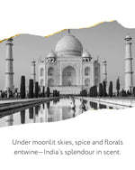 Immerse yourself in this heady, breath-taking, floral spicy fragrance which evokes the glamour and ornate splendour of colourful, beautiful India. The luxurious scent envelops the senses and transports the mind to India’s rich culture and heritage.